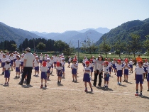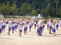 毎年、運動会で地域の踊りを全校で踊っています。昨年は「じょうかべ」を踊りましたが、今年は、「うれっしゃ鳥越」です。地域で踊りを教えてくださっている村上さんと中田さんの息の合った指導で、すぐにマスターすることができました。
