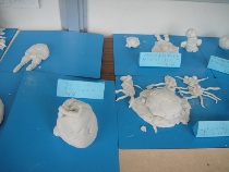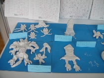図工の時間に粘土で「お話に出てくるキャラクター」を作りました。今にも動き出しそうな作品ばかりでした。