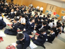 3年生は、総合の学習で米作りについて勉強しました。今日は、その仕上げの勉強です。丹精込めて育てた蛍米でおにぎりをつくりました。とても美味しかったです。