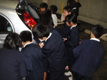 5年生は社会科で自動車工業の勉強をしました。今日は、白山麓の4つの小学校が集まり、電気自動車の仕組みを勉強しました。自動車が出来るまでの流れを勉強した後、実際に電気自動車に試乗しました。何と言っても静かな走りでした。