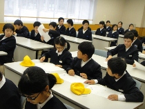 3年生の教室で算数の研究授業が行われました。いろいろな三角形の仲間わけをしたのですが、大切なことを見逃さずにしっかり発表することが出来ました。