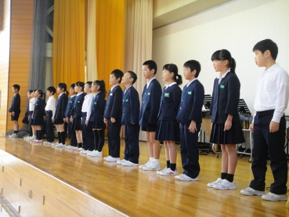 昼休みに給食室から出火したという想定で避難訓練をしました。休み時間ということで、放送をしっかり聞かずに行動したり、集合場所でふざけたりしている人が目立ちました。そんな中で5年生と6年生はさすがでした。お(押さない)は(走らない)し(喋らない)も(戻らない)の約束を守って整然と行動することが出来ました。下級生に対して、素晴らしい見本になりました。