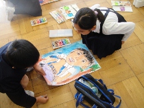 5年生は絵の会で物語の絵を描いています。物語を読んで、イメージを膨らませ表現しています。