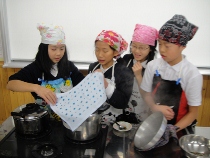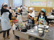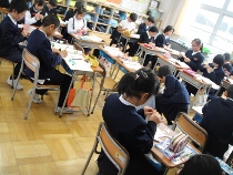 家庭科の授業で調理実習をしました。挑戦したのは「ご飯とみそ汁」でした。手際よく作業をしている人がたくさんいました。普段から家でたくさんお手伝いをしているのでしょうね。できあがりも最高だったようです。