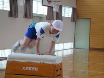 体育の時間に跳び箱運動をしました。最初は少し怖かったけど、だんだん足が高く上がるようになりました。