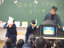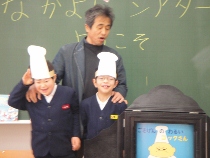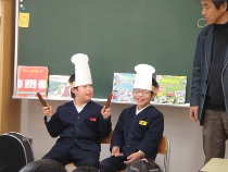 なかよし学級の二人が1年生を招待して、紙芝居を行いました。内容は、「きげんのわるいコックさん」のお話です。担任の川崎先生と3人での発表でしたが、1年生は大満足でした。