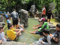 3,4年生は登校日を利用して、校外学習に出かけました。目的は「ジオパーク巡り」です。自然保護センターの中宮展示館で自然についての基礎知識を学習した後、近くの山へトレッキングに出かけました。美味しい空気をたくさん味わい、心も体もリフレッシュしました。日程の最後は「足湯」です。温泉のお湯に浸かっていると、いっぺんに疲れがとれました。