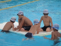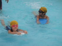 今日は2年生が登校日でした。前半、一学期の復習をみっちりした後、プールで泳ぐ練習をしました。少し泳げるようになったので、深いプールへも入ってみました。