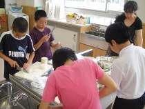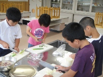毎日のように、学校へ来て勉強をしている5年生がいます。勉強ばかりだと、飽きてしまうので、前半に集中して算数の勉強をした後、後半に買手先生のスペシャル授業をしました。簡単な料理の勉強です。包丁で野菜を切る手つきは、まだまだでしたが、料理の味は美味しかったです。