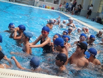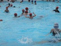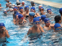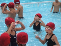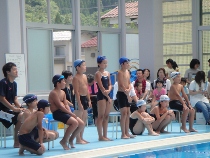 山ろくの4つの小学校の5,6年生が集まって、水泳交歓会を行いました。会場は、白嶺小学校の室内プールです。温室の中のような暑さの中、たくさんの保護者の応援を受けながら、精一杯に泳ぎました。
