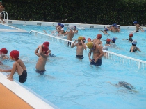 朝からの蒸し暑さに耐えきれず、たくさんの人がプールへやってきました。今日も満員御礼の札が下がりそうです。