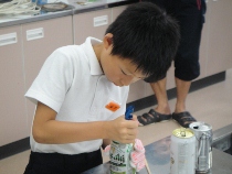 内容は、アルミ缶を使ってのポップコーン作りです。缶の中でポップコーンができていく様子を観察したり、ガスコンロの使い方や缶切りの使い方を練習したりと、普段はできない勉強を楽しみながらすることができました、