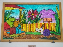 夏休み中の子どもたちのいない学校を探検してみました。たくさんの卒業制作が展示してありました。どれも力作ばかりでしたので、皆さんに公開する方法を考えていました。卒業生もホームページを見ることがあるかもしれないと思いましたので、ここで紹介することにしました。懐かしい作品をゆっくりとご覧になってください。
