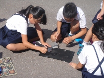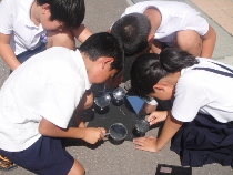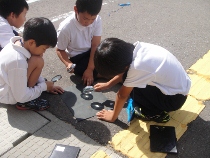 3年生は、虫めがねを使って、光を集める勉強をしました。最初は上手に集めることが出来ませんでしたが、慣れてくると黒い紙から煙が出始めました。同時に子ども達の口からは歓声が・・・・。理科の勉強は楽しいね。