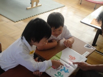 なかよしの二人は、文字の勉強を進めています。少しずつ上手になっていきました。