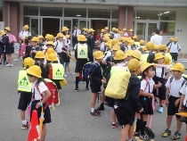 台風の被害が心配された今日の下校でしたが、高学年が低学年をしっかりリードしながら下校しました。