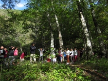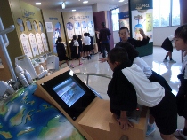 山麓の4小学校の6年生が一堂に会し、ジオパーク学習のモデルコースを巡りました。