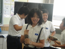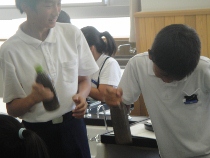 理科の時間に「空気と水」の変化について勉強しました。力を加えるとどうなるのかなといろいろな実験をしました。今日は空気と水の性質を利用して、噴水をつくりました。