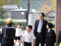 今日から「あいさつ運動」が始まりました。これまでは学年ごとに実施していましたが、今回は縦割り班で行います。初日は、1班と2班です。元気な挨拶が玄関に響き渡りました。