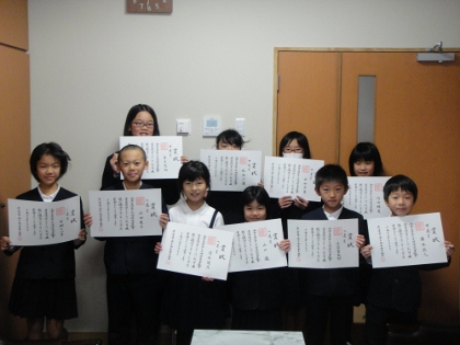 秋に全校で取り組んだ児童硬筆書写作品コンクールの結果が届きました。本校からは、特選と入選が五名ずついました。どの子も落ち着いて丁寧な字を書いていましたが、特にこの10人の作品が優れていました。