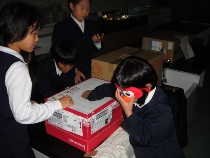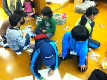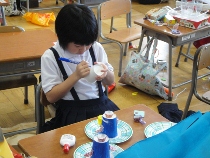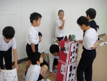 図工の時間に空箱を使って、いろいろな動物を作りました。1年生は、図工の時間が大好きです。