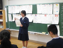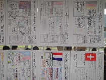 6年生は、社会科の学習で世界の国々の様子を調べました。調べたことをわかりやすくまとめ、授業参観の日に発表しました。自分で選んだ国を訪ねたような気持ちになりました。