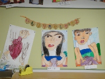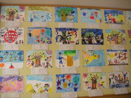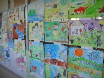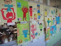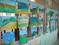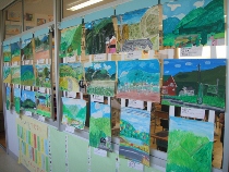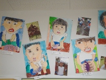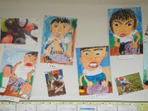 2年生が物語の絵を描きました。頭の中にイメージをいっぱいにふくらませました。
