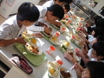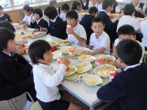 今日は縦割り班で給食を食べました。食べながら、今度の縦割り班活動でしたいことを話し合いました。自分の班がわからない人もいましたが、高学年がやさしく教えてくれました。