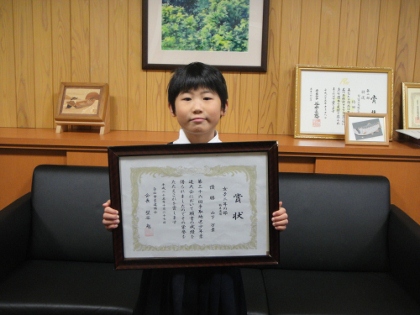 本日、調べ学習コンクールの表彰式がありました。本校からは、6年生の山下意織さんが佳作に入賞しました。おめでとうございます。