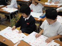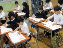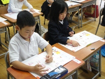 書写の時間に習った漢字の練習をしていました。文字は書き順を間違えるときれいにかけません。まず、指でなぞって、しっかり書き順を覚えました。