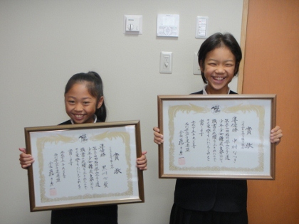 9月に空手道の大家があり、優秀な成績をおさめた中村なつきさんと黒川心愛さんが校長室へ報告に来てくれました。