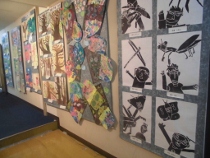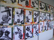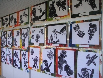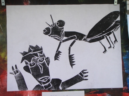 1年生は絵の会で紙版画に挑戦しました。白と黒で昆虫と遊ぶ自分を表現しました。