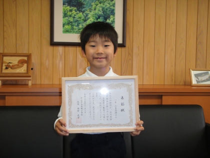 二つの柔道の大会へ出場し優勝したことを報告に来てくれました。おめでとうございます。