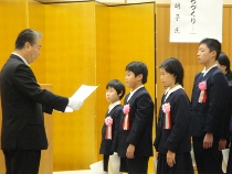 標記の文学賞へ本校から3名が入賞し、本日、表彰式がありました。とても素晴らしい作品で、読んでいて目頭が熱くなりました。