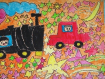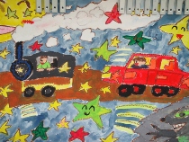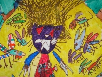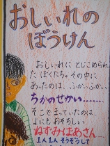 2年生が物語の絵を描きました。頭の中にイメージをいっぱいにふくらませました。