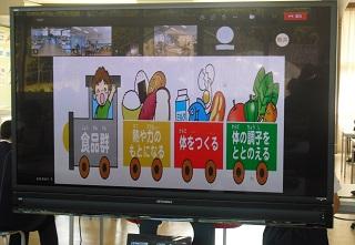 栄養教諭が「食べ物の働き」について、パワーポイントを使って話しました。食べ物にはそれぞれ大切な働きがあることがわかりました。