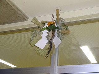 学校も新年を迎える準備です。玄関には、締め飾りを付けました。