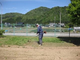 サツマイモなどを植える畑の準備をしています。畑の看板もできました。校務士さんが草刈りをして、畑をきれいにしてくれました。