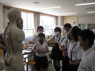 理科では人体の学習をしていました。食べ物がどのように消化されるのかを人体模型を使って学んでいました。