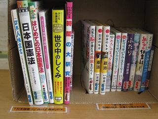 社会は政治分野の学習で、いろいろな施設がどのような目的で建設されたのか、どのような役割を担っているのかをを考えていました。どの学年も教室のうしろのロッカーには、授業と関連した本が置かれています。