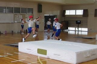 3年生の書写の授業です。筆を持つのもだんだん上手になってきました。字も堂々と書けています。4年生は体育でバトンパスの練習をしていました。