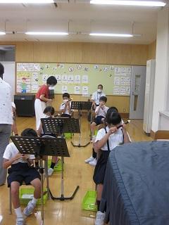 3年生の音楽の授業です。講師の先生をお迎えしてリコーダーの学習をしました。子どもたちは講師の先生の表現力豊かな演奏に感動していました。吹き方だけでなく、リコーダーの種類や片付け方も教わりました。