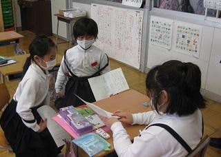 1年生の生活科。秋見つけで集めた木の実などを使って動物などを作りました。