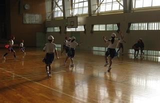 6年生の体育。フラッグフットボールの試合をしています。ボール運びも上手になっていました。