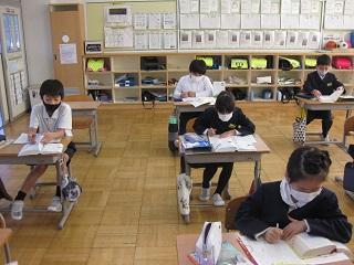 6年生の国語。漢字の50問テストに取り組んでいました。