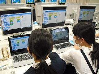 5年生は算数でプログラミング学習をしていました。正三角形や正方形、正六角形などをかくには、どんな指示を出せばよいかを考えています。