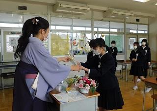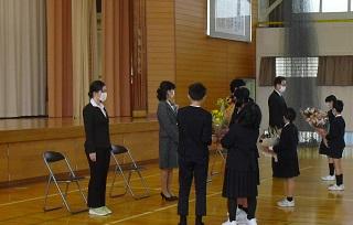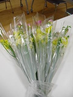 県の事業で石川県産のフリージア「エアリーフローラ」のアレンジメントと卒業生に一人一輪いただきました。ありがとうございました。