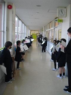 今日、 離任式を行いました。卒業した6年生も登校し、みんなで離任される4人の先生方とお別れをしました。今までお世話になり、ありがとうございました。先生方のご健康とご活躍をお祈りしています。