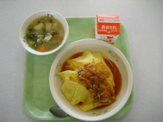 今年度最後の給食はデミグラスソースのオムライスとポトフでした。今日もおいしくいただきました。