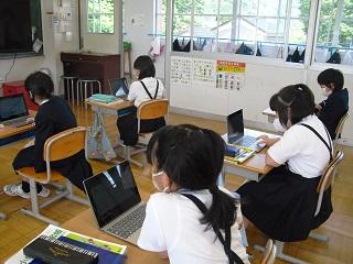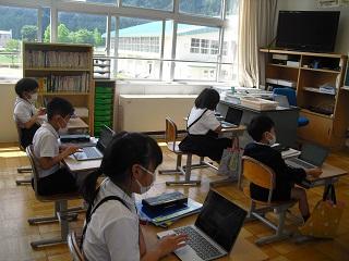 3年生はGIGA端末のカメラ機能を使って撮った自分の図工の作品を提出する方法を学んでいました。